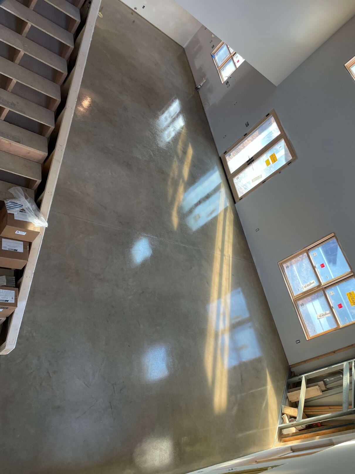 Grind & seal preserves a more modern, commercial look in these pole buildings-turned-homes. It also keeps costs down and reflects light to brighten up the home.